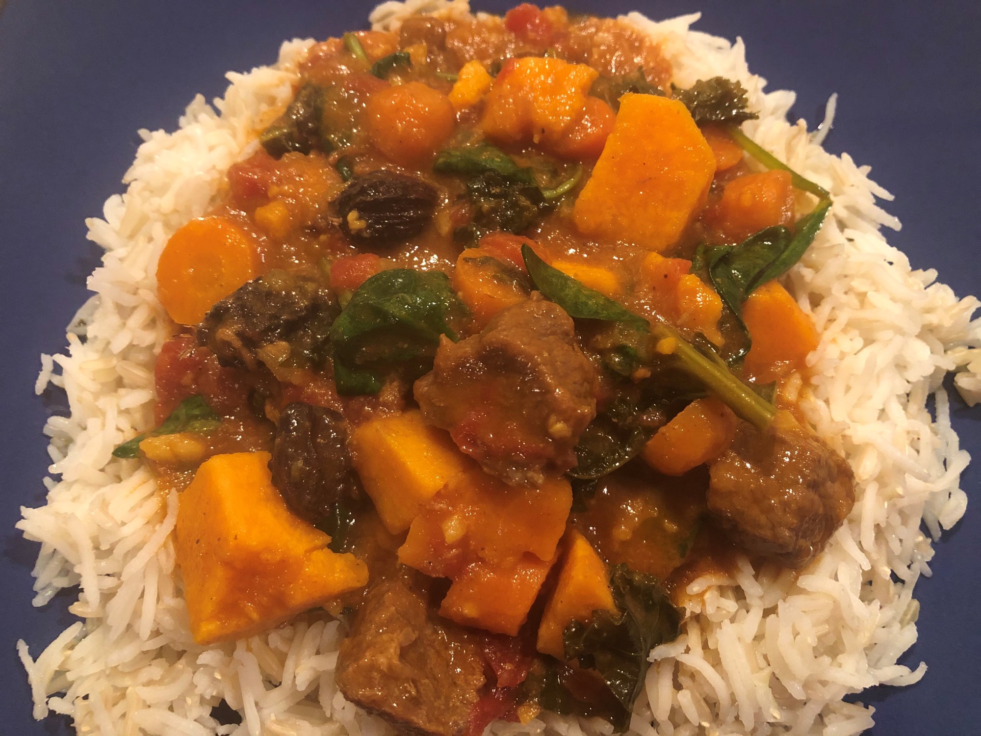 Both methods continue here: Add tomatoes and sweet potato, cover and bring to the boil. Cook for another 30-40 minutes at low-to medium heat. Check that beef and potatoes are tender. Add salt and more curry paste as you like it. Add additional tomato sauce if you like a more tomato-ish flavor.