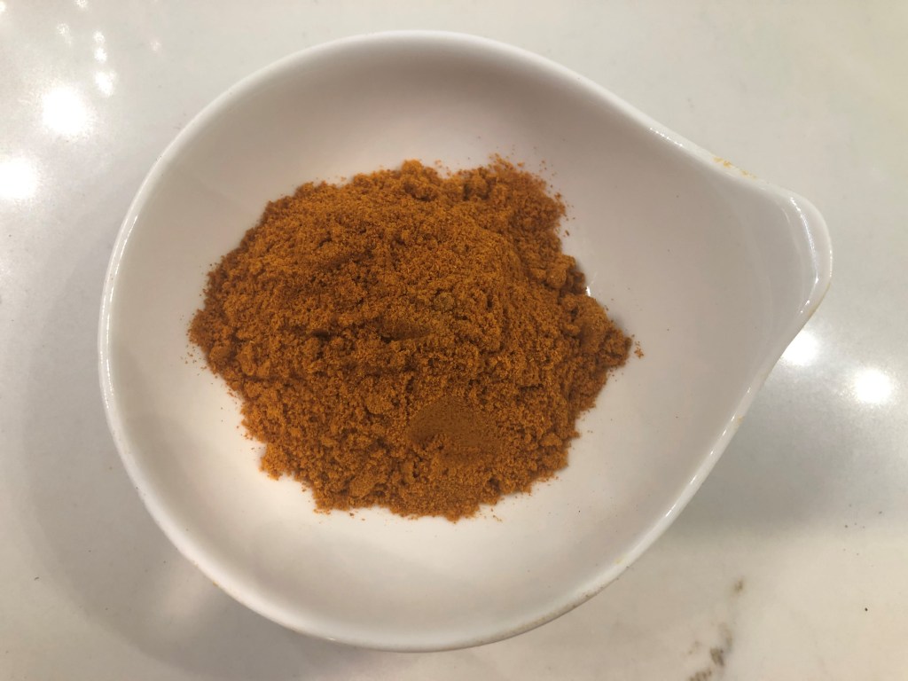 Sambar powder is a flavorful South Indian mixed spice. It contains coriander, cumin, mustard seeds, black pepper, red chilies, fenugreek, cinnamon and dried coconut. I love it because it gives texture to dishes and nicely spices them up. But be careful – it’s hot!