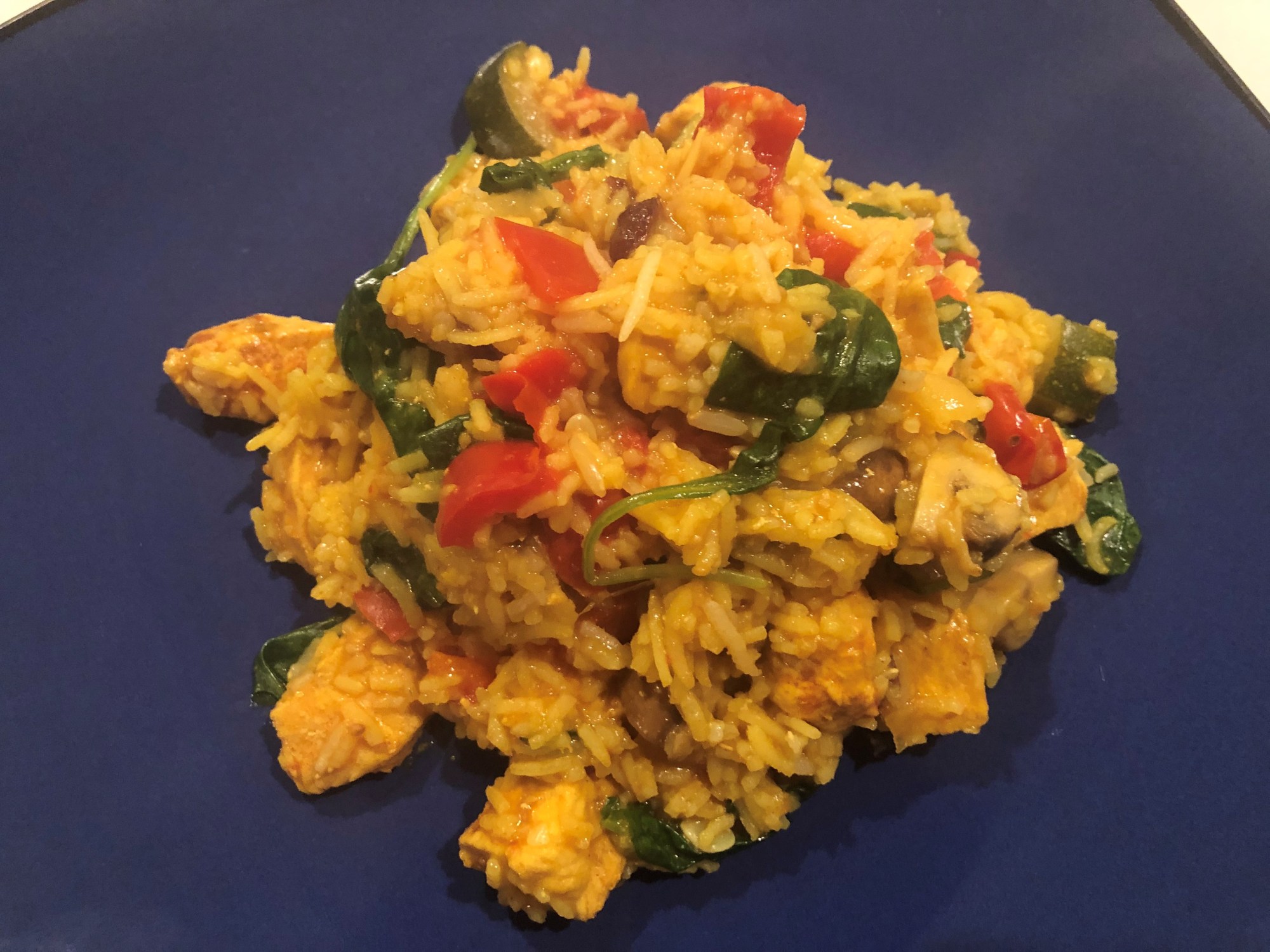 The picture above shows the dish with some extra spinach leaves which I had left and added. Feel free to add any other veggies – it’s your dish!