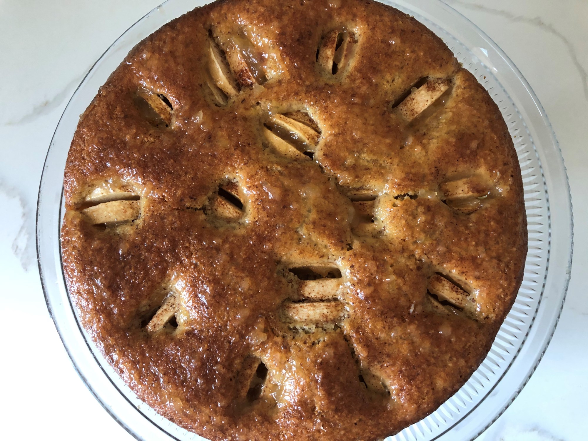 This is a delicious light apple cake of German origins with a hint of almonds and cinnamon
