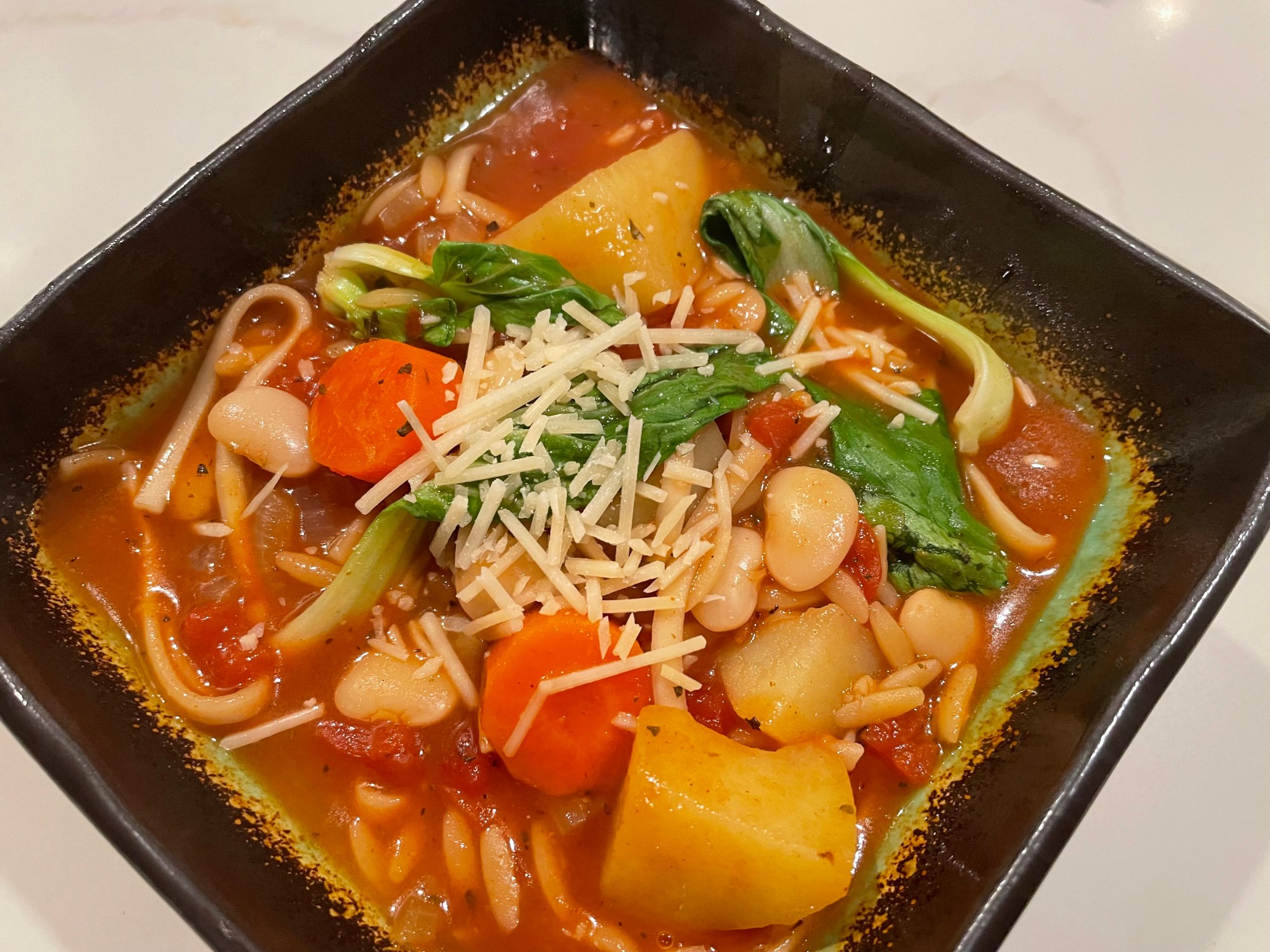 Garnish soup bowls with grated Parmesan (or leave it off if you prefer it to be vegan).
