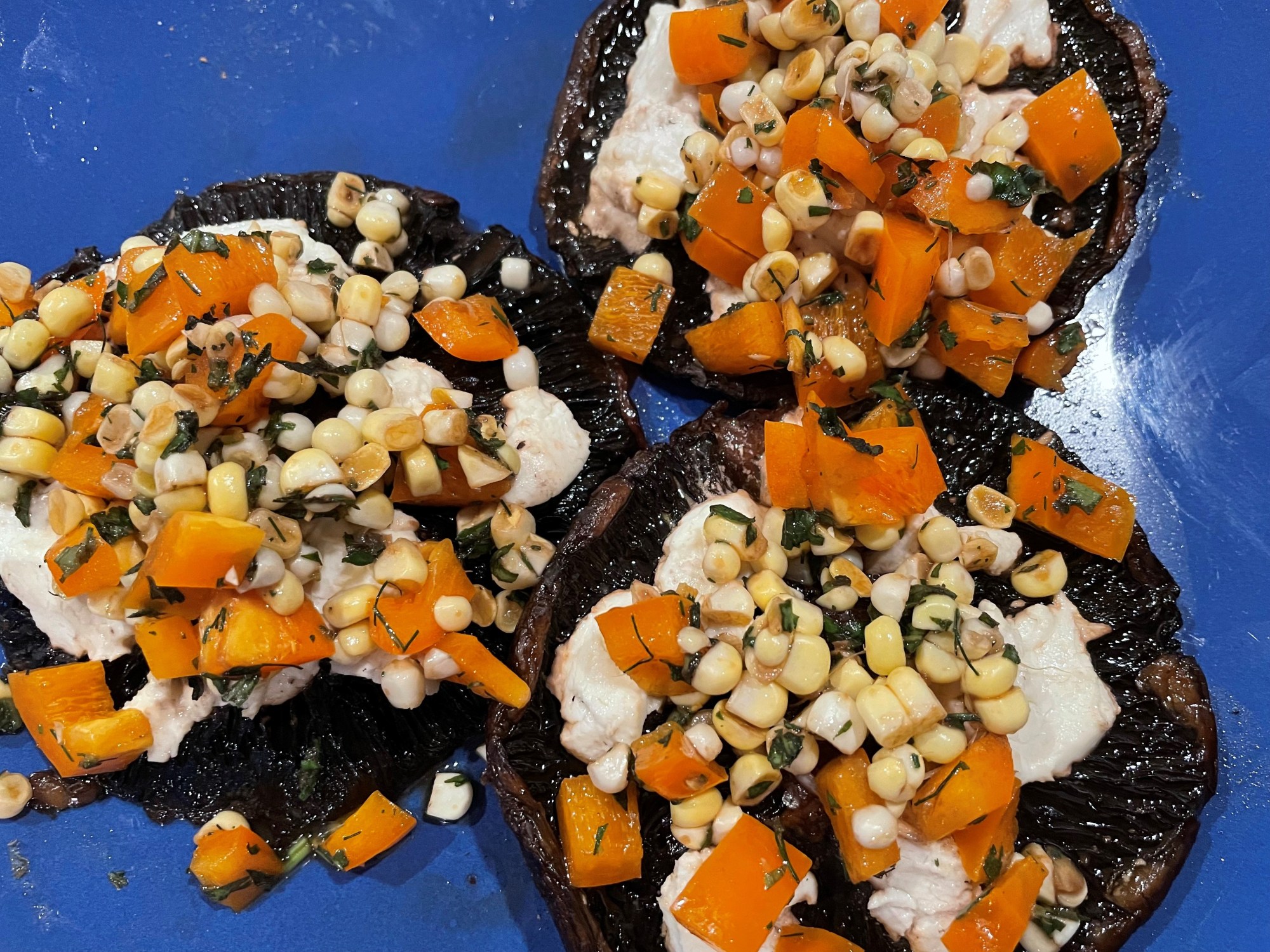 To serve, put the portobellos on serving plates and spoon the corn relish on top.