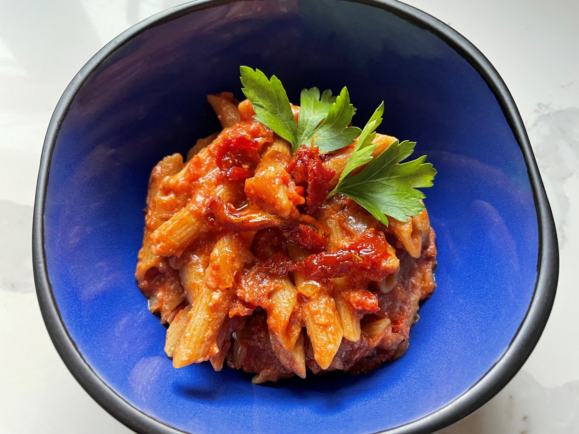Made with sun dried and fresh tomatoes, this pasta is a super easy and quick recipe for busy people. You can use any pasta you like and easily scale it up and invite friends over.