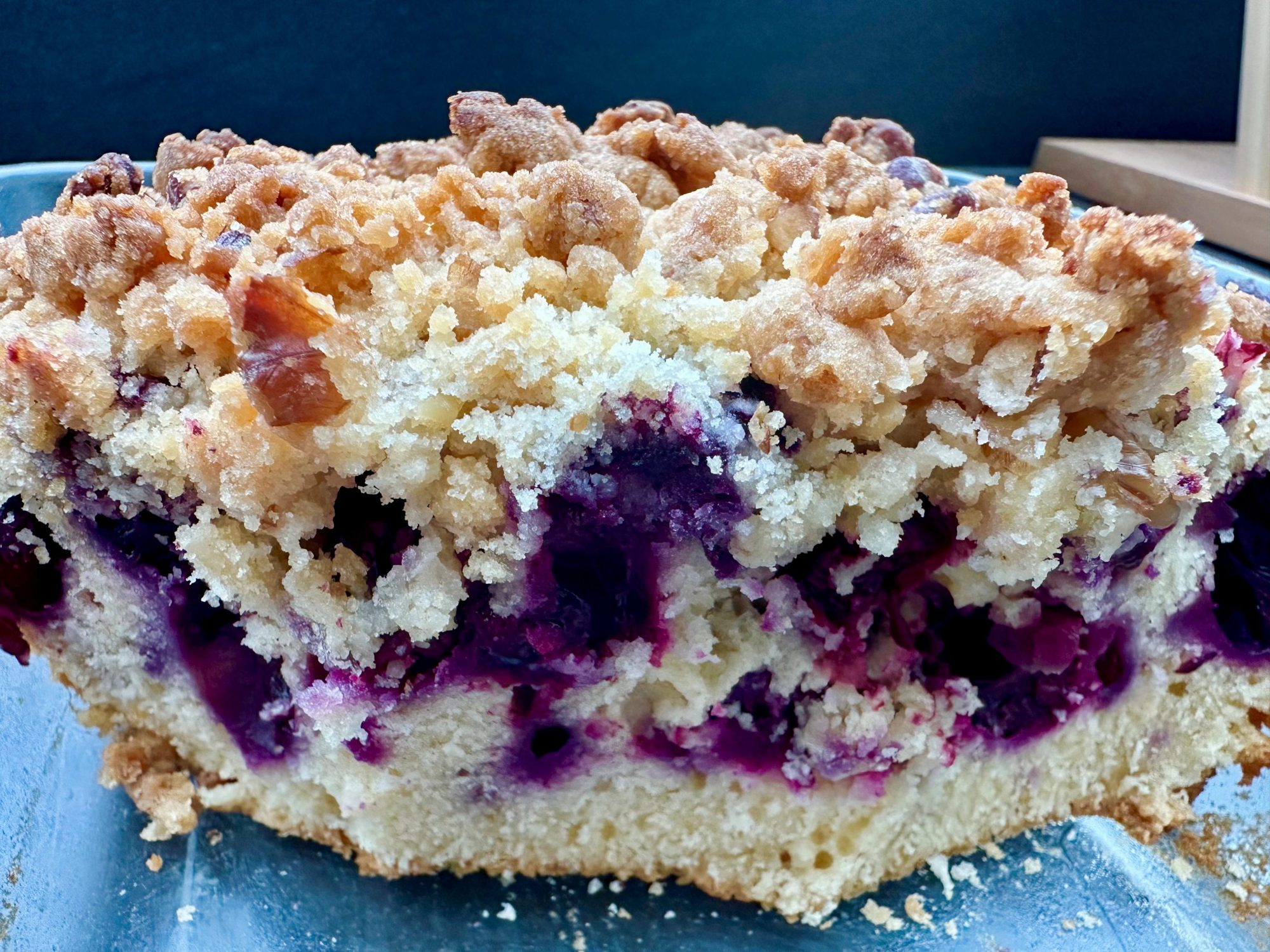 This is a perfect summer cake for breakfast, afternoon coffee hour or tea time. It’s easy and yummy and will last in the fridge for two to three days.