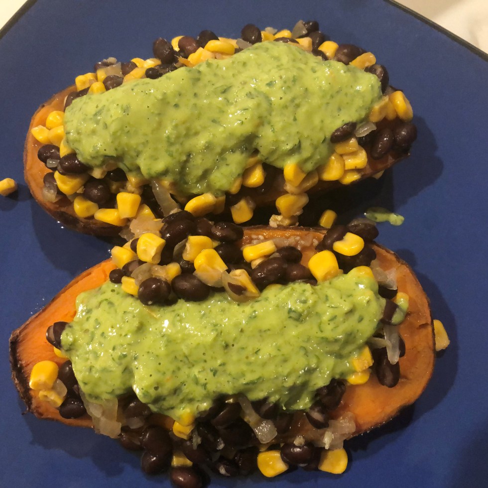 Sweet Potato Pods with Cilantro Sauce
